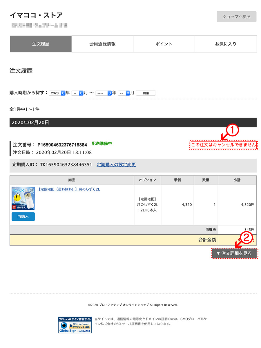 - 注文履歴の中には、現在の定期宅配ご注文状況が表示されます。